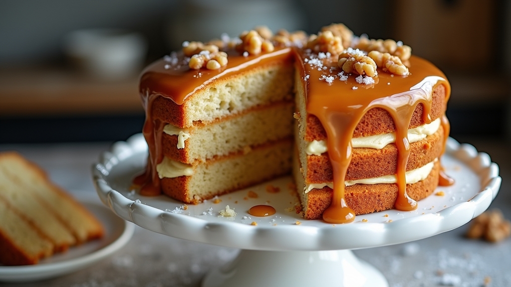 Preheat your oven to 350°F (175°C). Grease and flour two 9-inch round cake pans. In a large mixing bowl, cream together the softened butter and granulated sugar until light and fluffy. Add the eggs one at a time, mixing well after each addition. Stir in the buttermilk and vanilla extract, then mix in the flour, baking powder, baking soda, and salt until just combined. Gently fold in the caramel sauce, being careful not to overmix. Divide the batter evenly between the prepared pans and bake for 25-30 minutes, or until a toothpick inserted in the center comes out clean. Allow the cakes to cool completely in the pans before transferring to a wire rack.