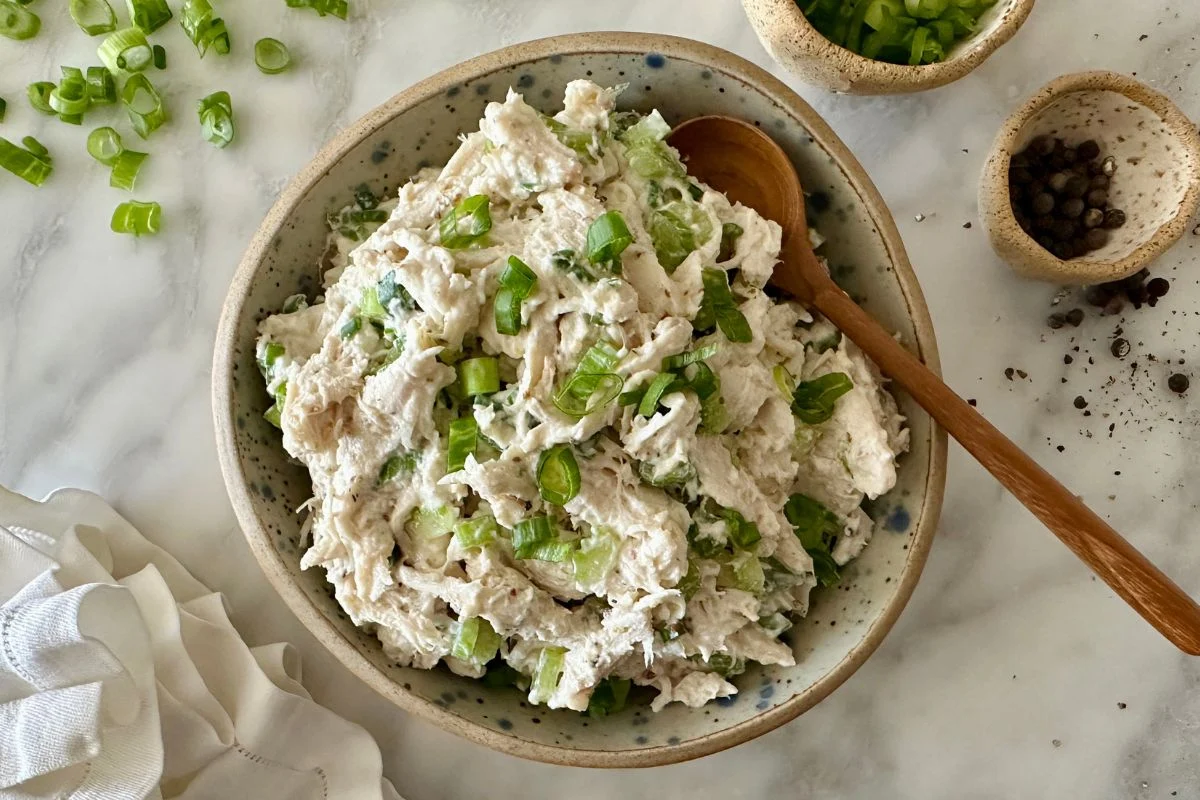 Next, mix the cooked chicken with cottage cheese, chopped onions, and fresh herbs like cilantro or parsley.