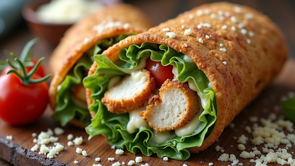 To make this wrap, you’ll start by preparing the crispy chicken, which can be done by frying or baking your favorite chicken tenders. Once the chicken is ready, you’ll layer it with fresh romaine lettuce, creamy Caesar dressing, and a sprinkle of Parmesan cheese, all wrapped up in a tortilla. This recipe not only offers a mouthwatering combination of flavors but also provides a balance of protein and greens, making it a satisfying option for any meal.