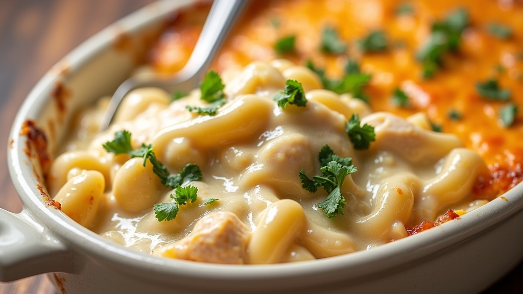 Adding the chicken and pasta is where the dish really starts to come together, creating that comforting, hearty base we all love. I typically use rotisserie chicken for its convenience, but feel free to experiment with different chicken varieties like grilled or sautéed chicken breast. As for the pasta, I opt for penne or rotini, as their shapes hold onto the creamy sauce beautifully. Simply add your chosen chicken and pasta to the mixing bowl, ensuring they’re evenly distributed. This step is where the magic happens, as the flavors meld and the excitement builds. It’s the foundation of a dish that’ll warm hearts and bellies alike. Trust me, you won’t want to skip this vital step!