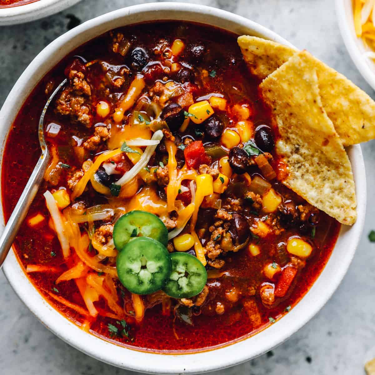 With a base of ground beef or turkey, this soup is packed with flavor from taco seasoning and a variety of vegetables. You can serve it with your favorite taco toppings such as cheese, sour cream, and tortilla chips for a complete meal. This recipe is also great for meal prep; it can be stored in the refrigerator for several days or frozen for later enjoyment. Let’s plunge into making this delicious taco soup that is both filling and fun!