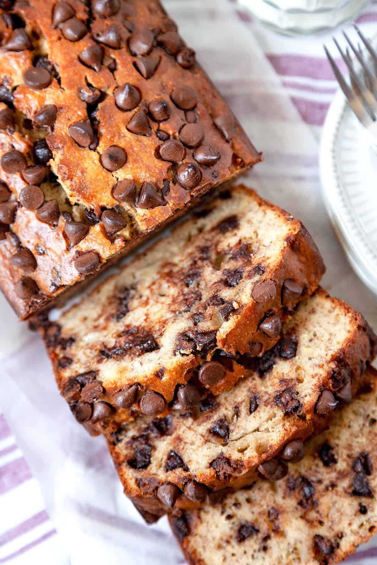 Pour batter into the loaf pan. Optional: Sprinkle extra chocolate chips on top.